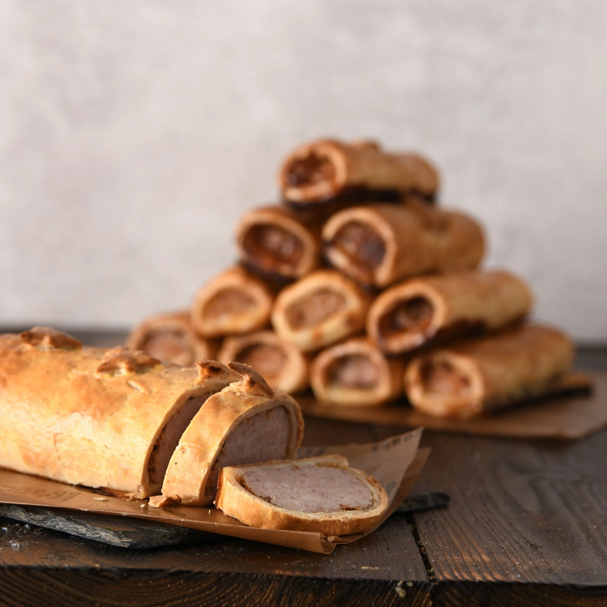 Our Deli Favourites – homemade sausage rolls, quiches, and cooked hams.