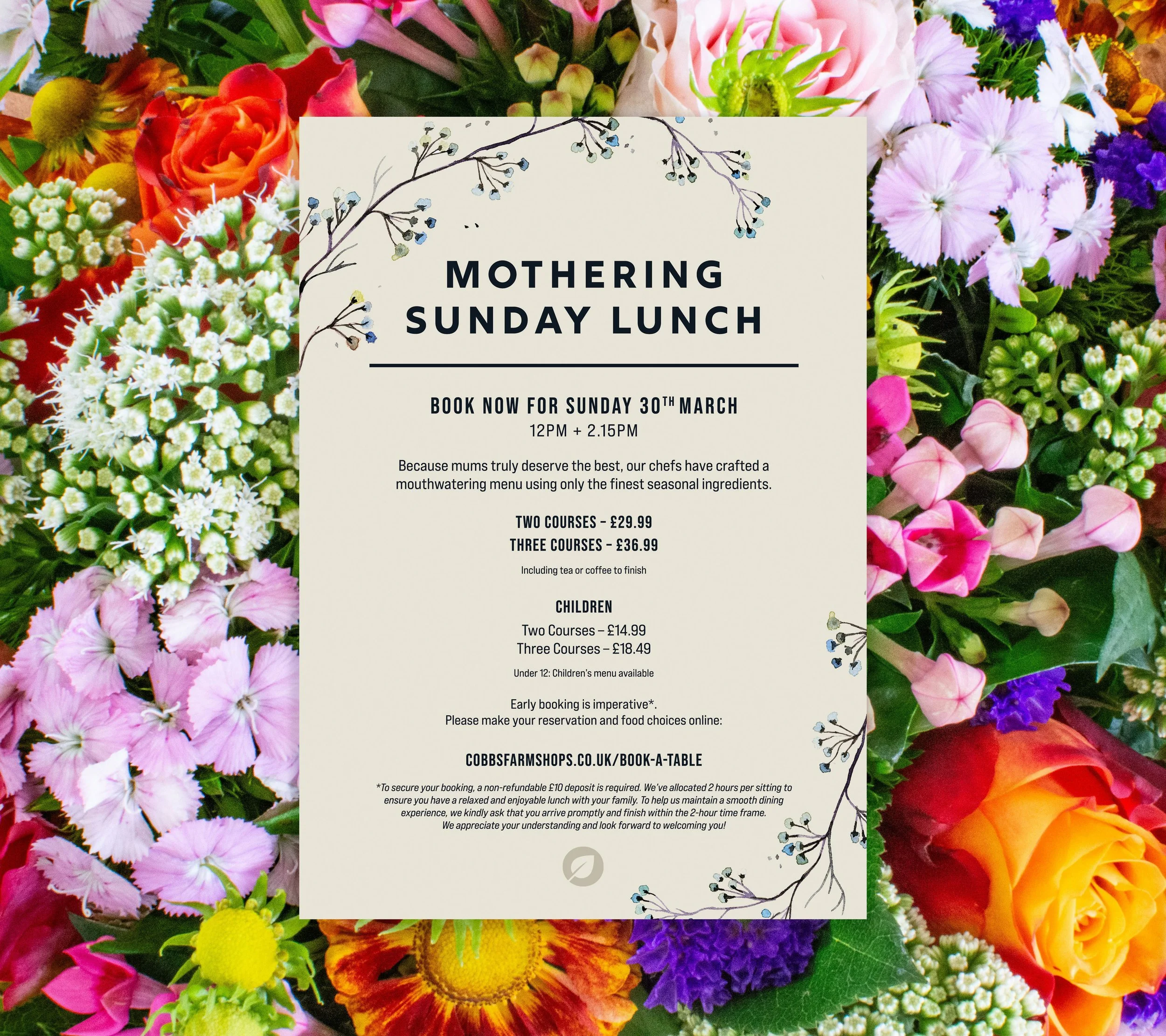Join us on Sunday, 30th March at Cobbs for a delightful Mothering Sunday lunch