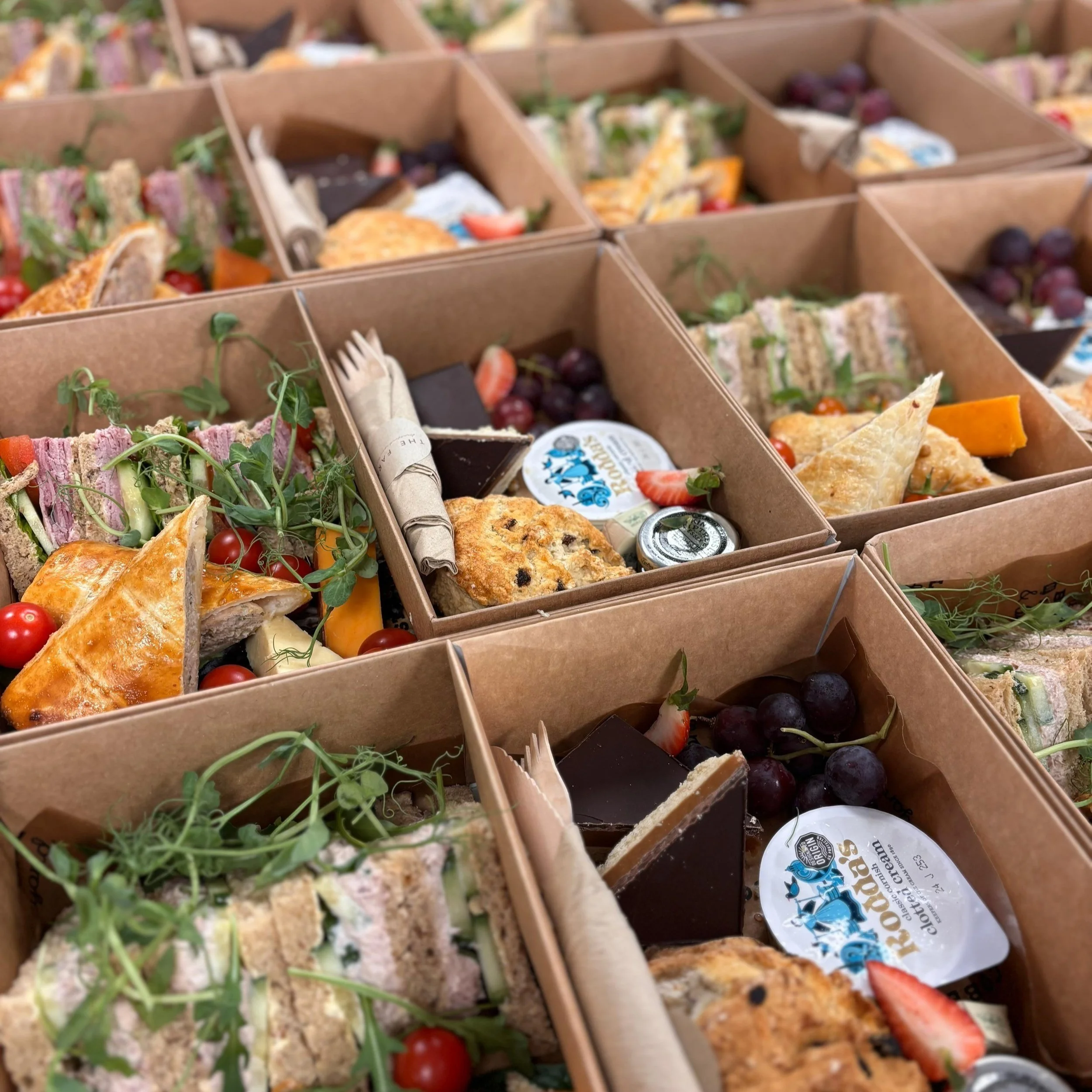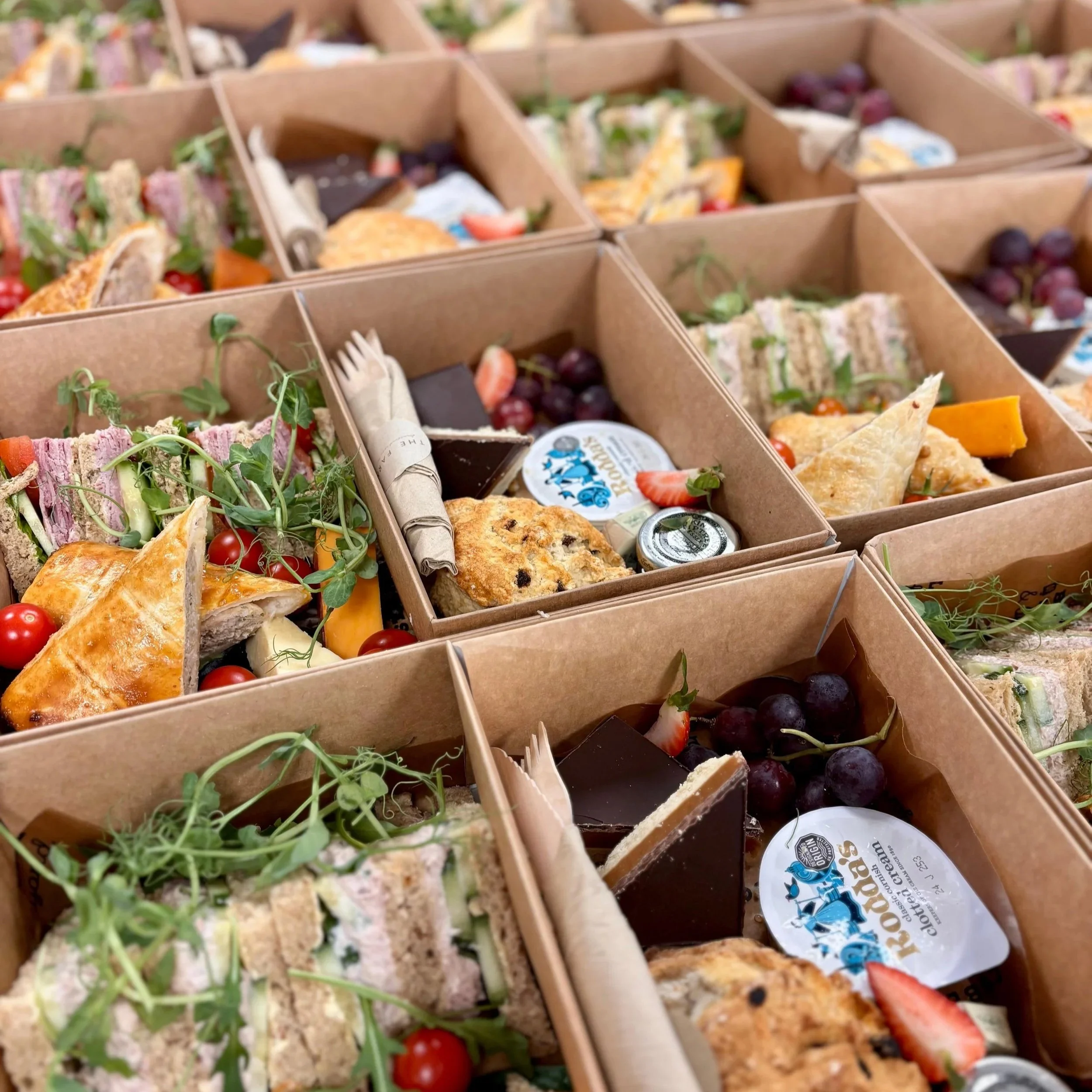 Pre-order a delightful Deli Graze box to enjoy picnic-style on our lawn with your family.