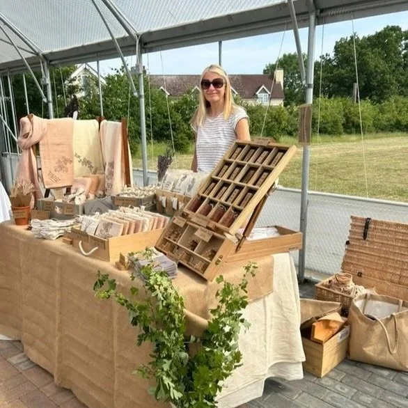 Their fabric collection features scarves, shawls, and reusable gift-wrapping cloths, all naturally dyed with trees and plants gathered from along the River Avon and surrounding fields and hedgerows. The range also includes hand-sewn napkins and a selection of calming herbal pillows.