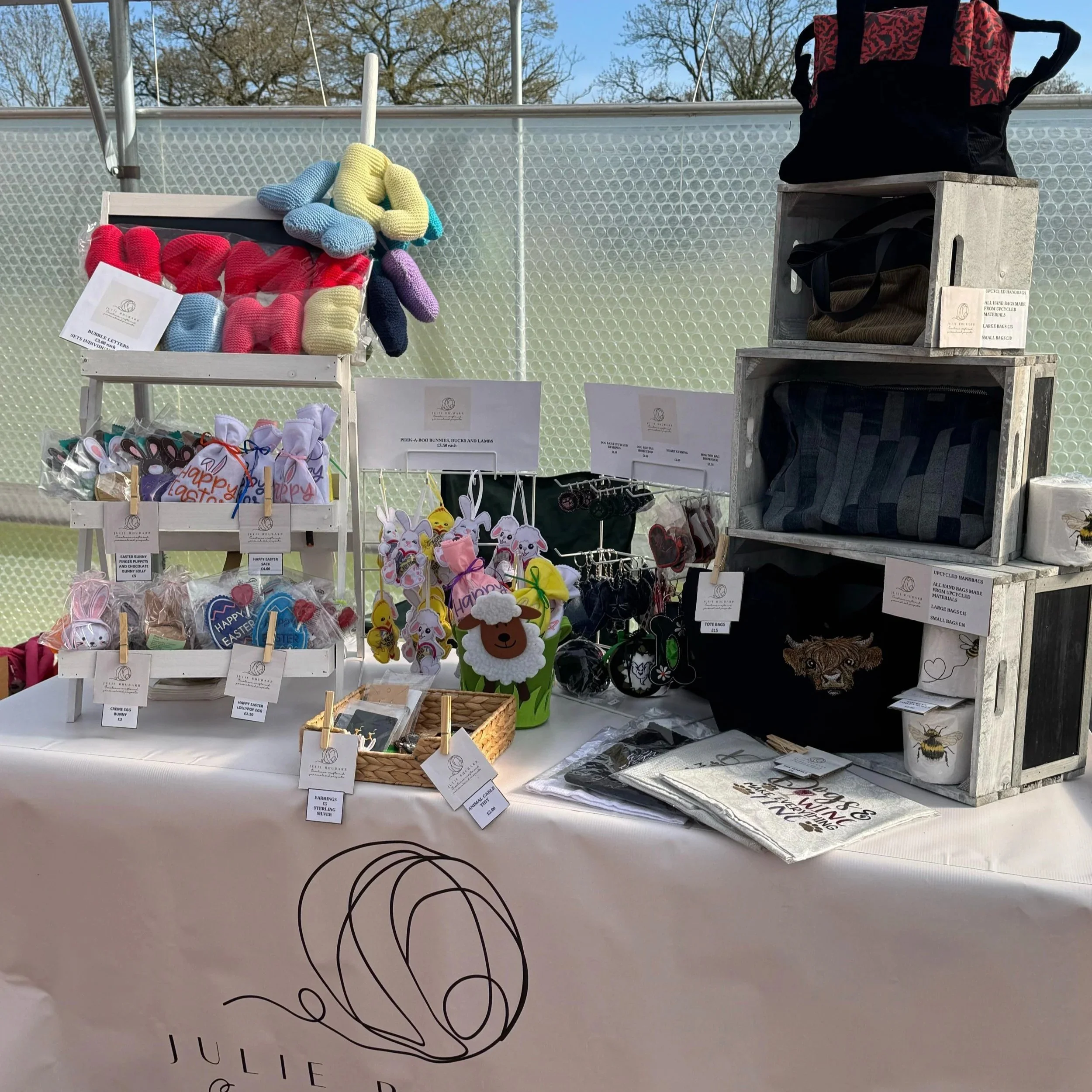 Julie Rhubarb creates handmade crafts, including knitted cushions, embroidered earrings, and upcycled keyrings. Passionate about sustainability, she uses recycled materials like old denim to make handbags and keyrings. Her items are seasonal and can be personalised upon request.