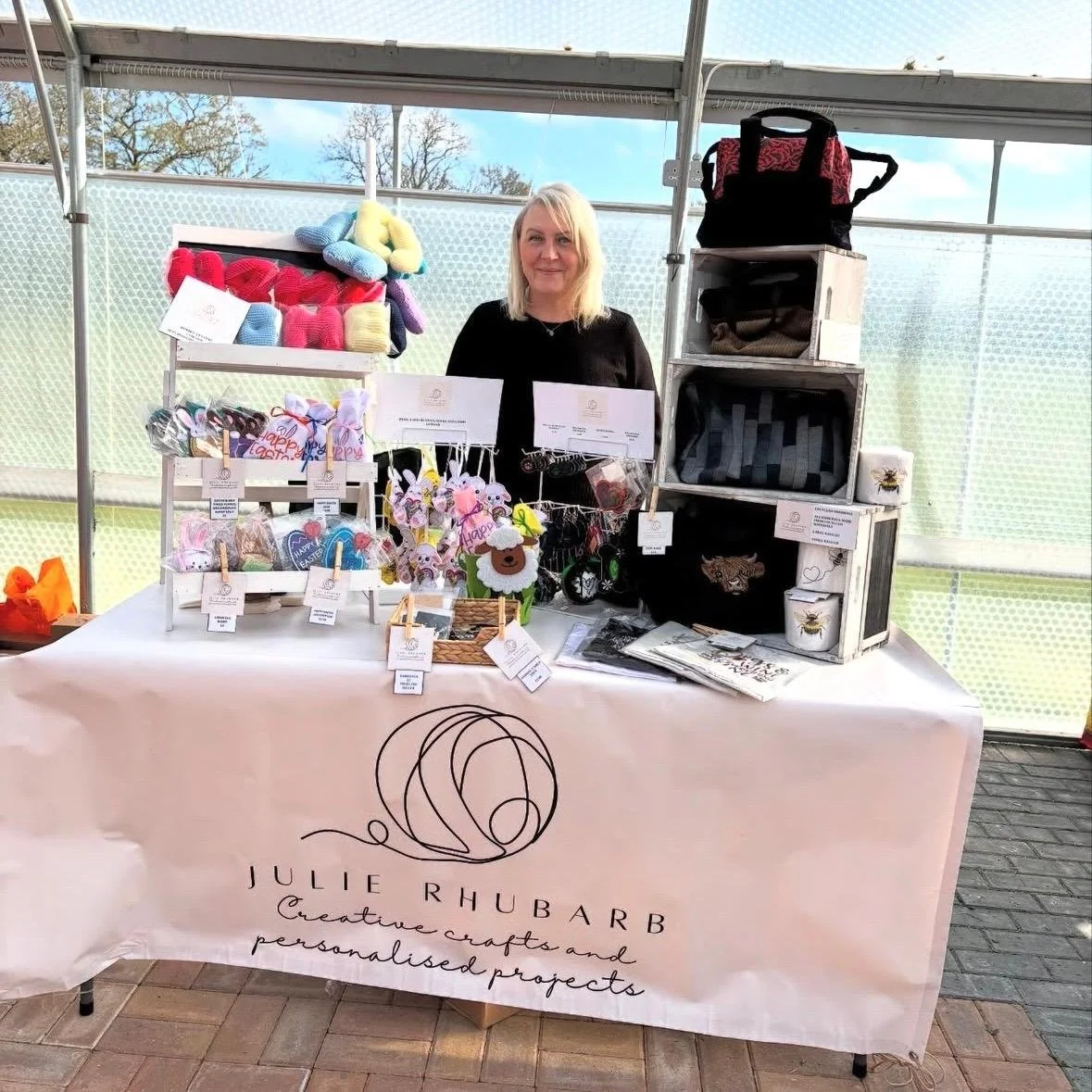Julie Rhubarb creates handmade craft projects. Initially I started making memory items, such as bears, cushions and ornaments, which I still love to do but have now expanded to create a wide variety of knitted, sewing and embroidery items.