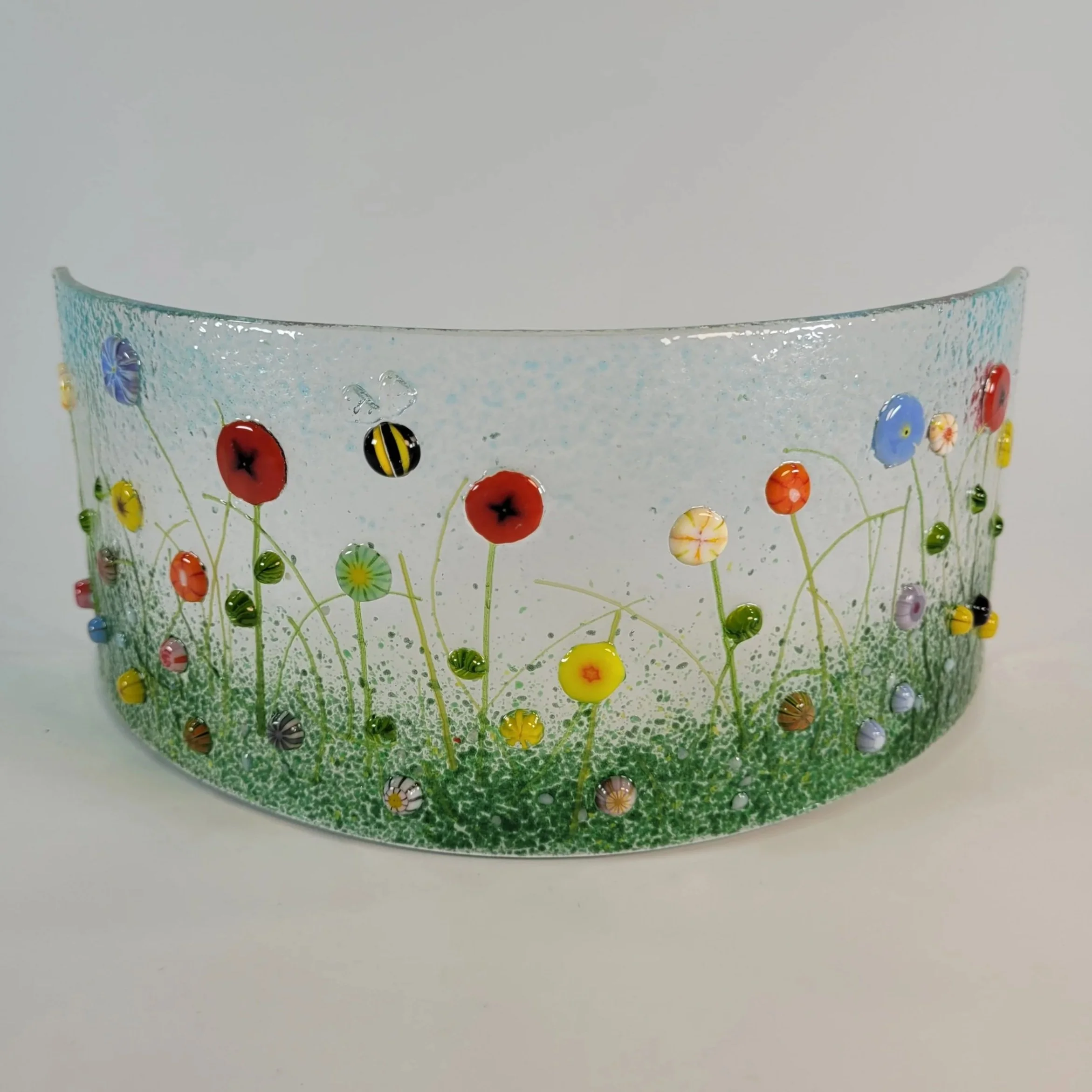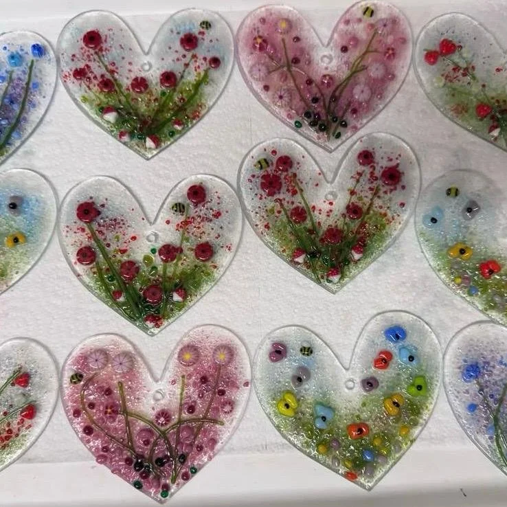 My work is influenced by nature and the wider world, and the tactile and reflective nature of the glass itself often informs her artwork designs. Her creations vary from small coasters to large glass totem poles, fish clocks to hanging giraffes, candle holders to abstract sculptures, birds, trees and flowers and many other creations.