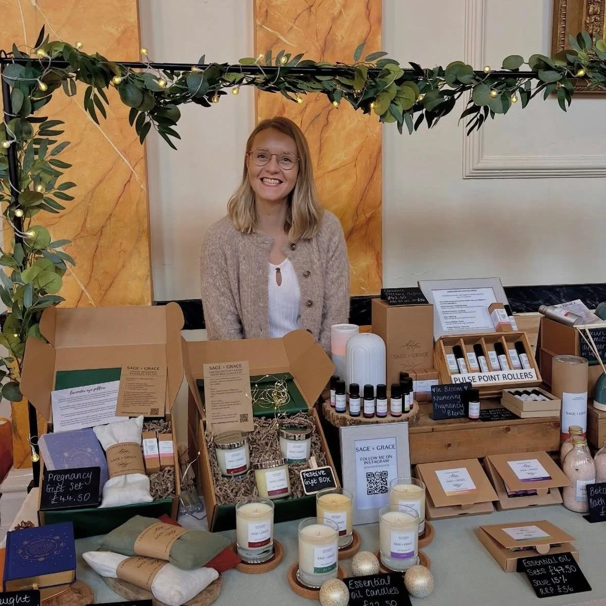 Sage & Grace is an independent aromatherapy business founded in 2018. It offers a range of exclusive essential oil home fragrances and wellbeing ranges, which include luxury candles, pure essential oil blends and pulse point rollerballs. Each product is made by Hannah who exclusively designs and creates all the unique scents to provide multiple wellbeing benefits.